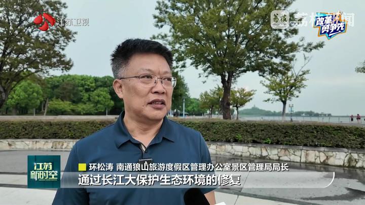 南通狼山旅游度假区管理办公室景区管理局局长环松涛说:“通过长江大保护生态环境的修复,良好的生态环境吸引了很多的游客和市民来观光,切切实实感受到‘绿水青山就是金山银山’。”