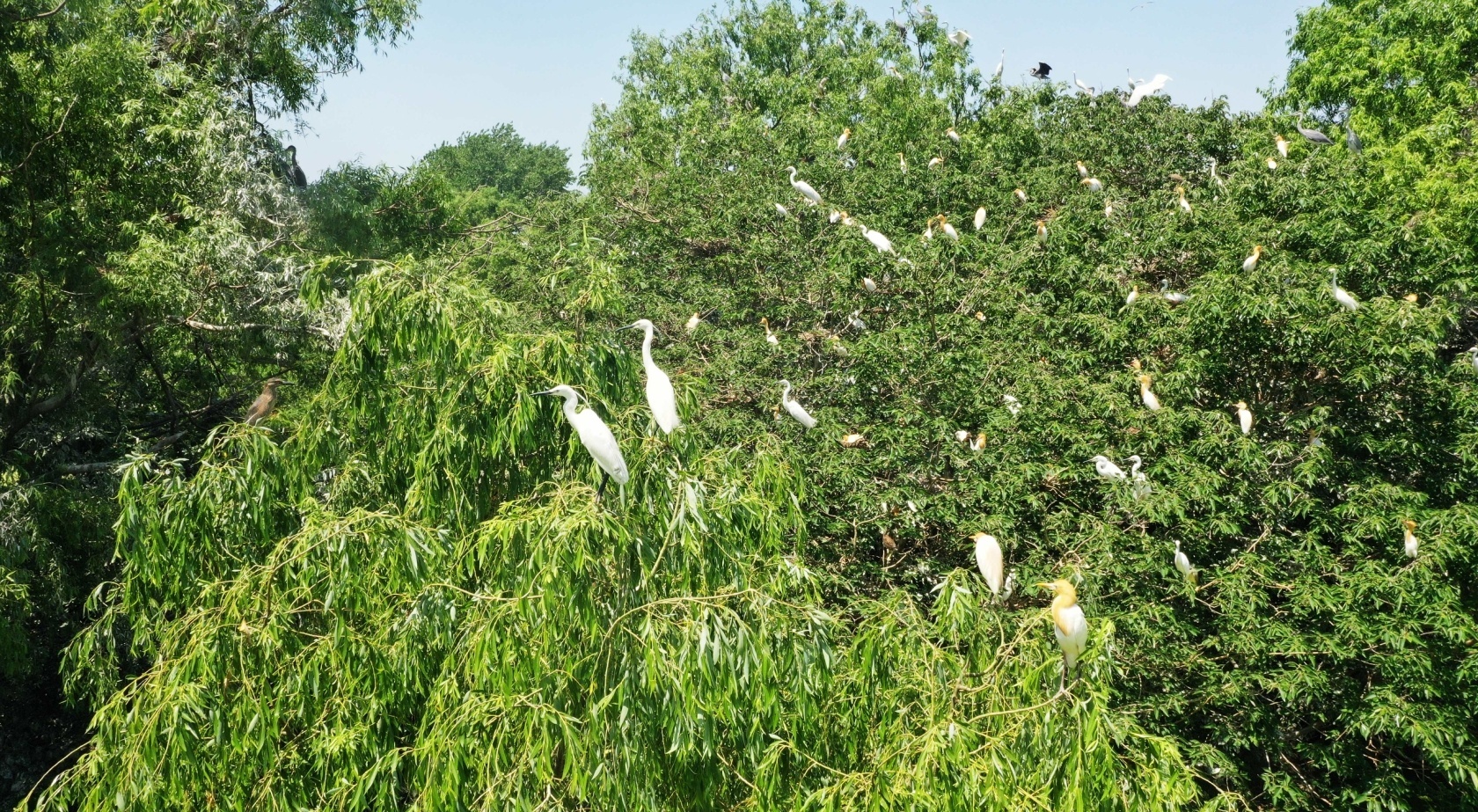 朱贤征曾认真了解过,一般情况下,每对白鹭孵化3—4枚蛋,有约15000只幼鸟诞生。这轮幼鸟“出生潮”从三月底持续到六月底。幼鸟孵化出来,10—15天就能自己飞起来跟随妈妈活动和觅食了。它们都想在这儿“定居”了。