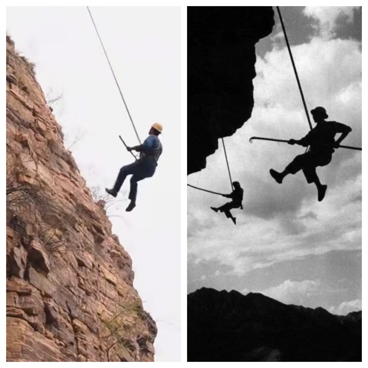 “渠三代”任斌强从小长在红旗渠边,每每遇到困难,心情烦闷的时候,总喜欢去渠边走一走。2021年,在渠边散心时,看到红旗渠景区在招募演员,就这样,他成了一名凌空除险情景表演人员。巧合的是,他的姥爷任羊成在修建红旗渠时,正是除险队长。当任斌强表演前系上“英雄扣”,演绎的情景与爷爷当年的场景重合,他对这段历史有了不一样的感受,“从小就听他们讲那段故事,但是有了设身处地的感受我才真正理解他们那种不认命不服输的精神。”
