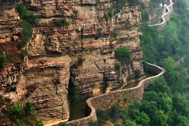 以命换水,向石求生。削平1250座山头,架设152座渡槽,开凿211个隧洞,修建各种建筑物12408座,挖砌土石达2225万立方米,历时近十年,先后三十万人参与建设,牺牲81人,全长70.6公里的红旗渠终于建成了。林县人民用一锤一钎,用血肉之躯谱写了千军万马“战太行”的英雄史诗。