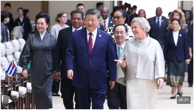 视频丨习近平和彭丽媛同出席全球妇女峰会的国际贵宾集体合影