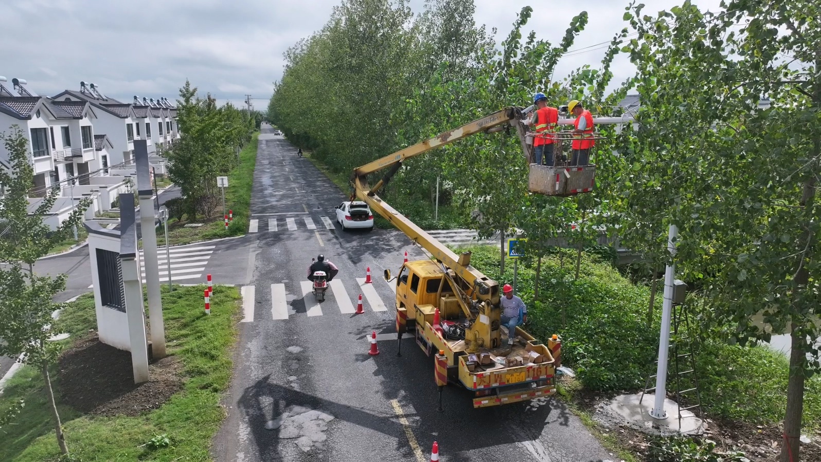 智慧的触角不仅覆盖城市,更延伸至乡村每个角落。在宝塔镇辛庄新型农村社区,市县为民办实事项目——农村智慧安防村居建设正紧锣密鼓推进。该项目计划新建1281路治安监控,重点覆盖宝塔、冈西、庆丰、开发区、近湖5个乡镇的95个行政村,为乡村安全筑起“防护网”。“根据前期勘测,95个村居共533个点位,118根新立杆件及所有前端设备全部完成,当前正在接电通网调试。已安装完成点位合计86个自然村,430个点位光缆已到位,正按以乡镇为单位推送至后台试运行,预计10月份完成该项工程。”农村智慧安防村居建设(二期)项目建湖电信施工现场负责人高贵华介绍。
