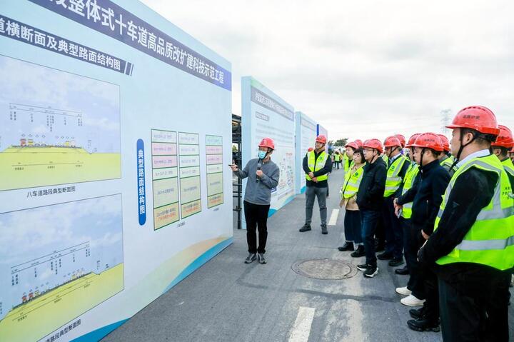 “技术团队在十车道断面科学布置、超宽幅高效排水、道路结构一体化快速检测与内部缺陷修复技术、全钻渣软弱土地基加固等关键技术上取得了一系列突破。”省交通工程建设局公路处处长江臣介绍。