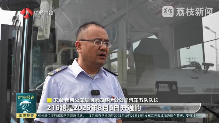 南京公交集团第四客运分公司汽车五队队长宋军说:“216路是2025年8月6日开通的,主要就是衔接地铁1号线、5号线和后续即将开通的6号线,解决南部新城和汇景家园社区群众的出行。”