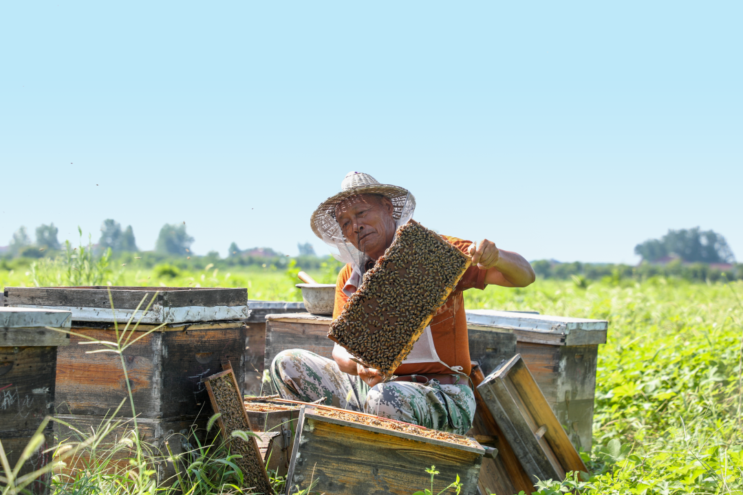 夕阳西下,摇蜜机的转动声渐渐停歇,沈炳铨和工作人员将装满蜂蜜的桶小心搬上货车。车窗外,蜂箱依旧排列整齐,“嗡嗡”的蜂鸣声与远处的田野风光融为一体。这场以蜂为媒、以非遗为魂的“甜蜜实验”,正悄然开启传统资源创新发展的新路径,为乡村振兴注入别样活力。
