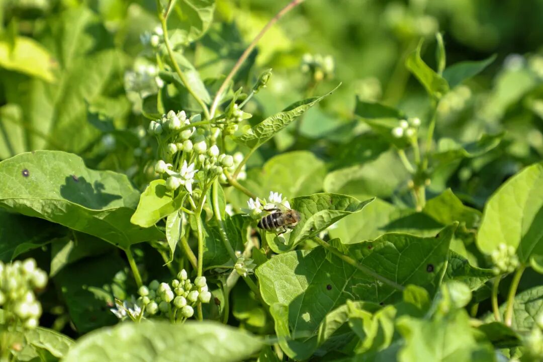 这场“甜蜜酿造”的背后,离不开滨海何首乌非遗传承人陈华文的创新探索。他站在摇蜜机旁,目光紧紧盯着流淌的蜂蜜,脸上难掩兴奋:“这次专门请蜂农过来,引导蜂群定向采集首乌花蜜,是我们把非遗资源和生态养殖相结合的新尝试。”他指着身后连绵的千亩首乌田介绍,基地始终坚持仿野生栽培模式,从播种到收获全程不使用化学农药,全靠人工除虫、施用有机肥,只有从源头保证首乌花的纯净,才能酿出高品质的首乌花蜜。