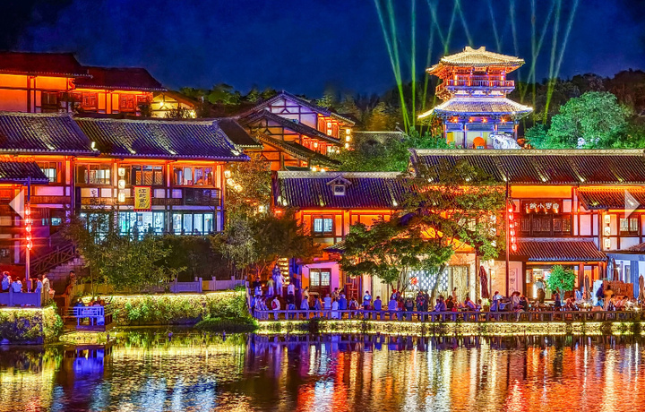 当夜幕降临,景区瞬间切换“降魔主题夜场”模式,灯光璀璨、音乐激昂,氛围比白天更燃。无论游客是社牛还是社恐,都能找到适配的玩法:可在仙、魔、道三派中选择阵营,秒入戏开启沉浸式体验;可与“搭子”参与才艺PK,为阵营闯关赢取周边好礼;还能在古风电音氛围里,跟着降魔DJ“山镇蹦迪”,释放一整天的活力。