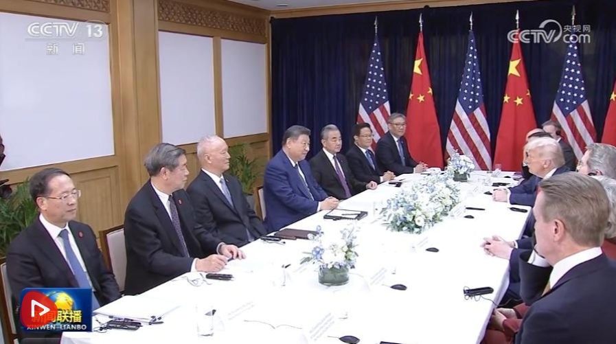 当地时间10月30日,国家主席习近平在釜山同美国总统特朗普举行会晤。
