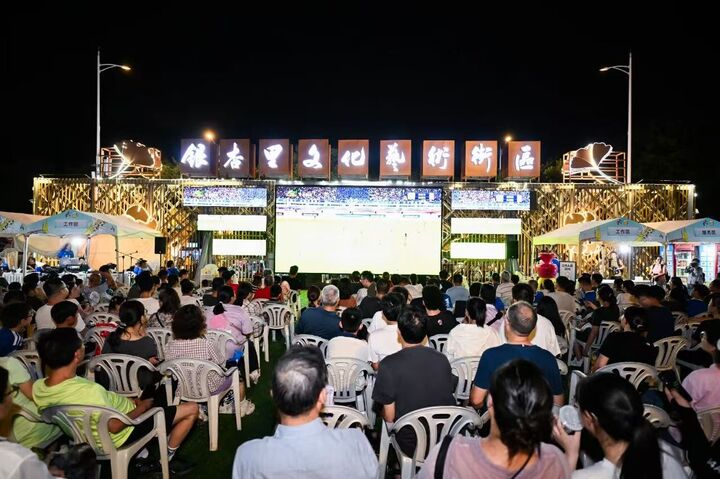大剧院东门外,银杏里文化艺术街区火树银花,大屏直播赛事吸引了3000余名球迷,单日客流超3万人次。自7月5日南京主场首度移师奥体中心,银杏里成为南京着力打造的“苏超第二现场”。每逢比赛日,傍晚六点到午夜,两千平方米的银杏里沉浸在足球与文旅交融的热潮之中。