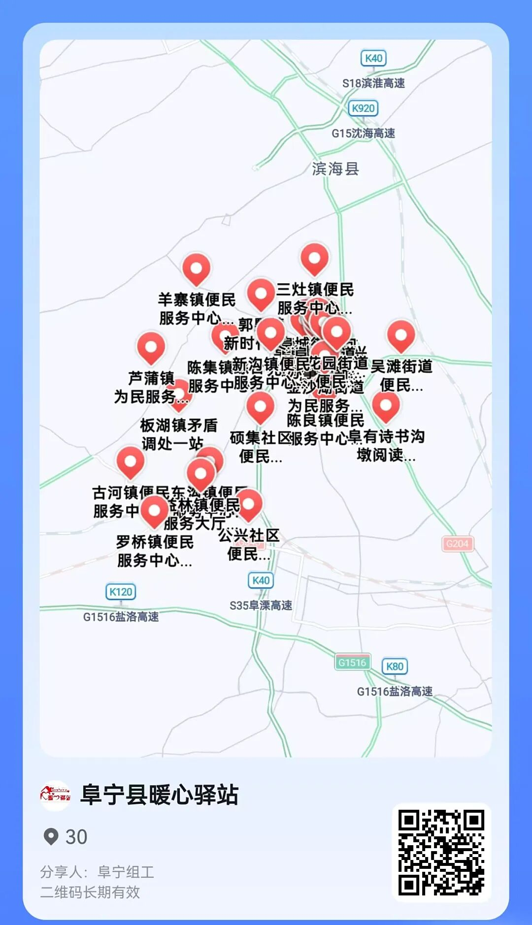 体现了为新就业群体服务的精细度。阜宁县“暖心驿站”开放的同时,新就业群体“暖心驿站”导航温馨上线。这是一款便捷的线上服务地图,依托高德地图平台,汇聚全县30个基层服务站点,提供一键查询、精准导航、服务介绍等功能,实现服务资源全域共享、动态更新。让新就业群体与“暖心驿站”在线上“相连”,便于新就业群体快速获取服务内容、精准找到站点位置,更显方便快捷。