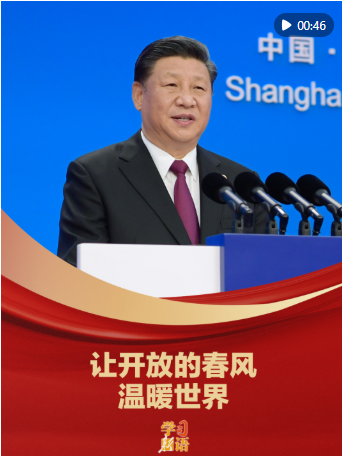 习近平主席曾在进博会上,用三个“不会变”,诠释了中国与世界共享机遇、互利共赢的胸怀与担当,展示了坚定不移的开放决心。进博之约向世界许下中国之诺:中国愿同各国一道,共建开放型世界经济,让开放的春风温暖世界!