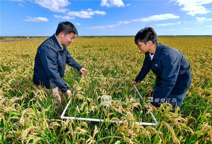 收割机穿梭田间,稻穗翻滚成浪……11月3日,位于盐城东台条子泥条北片区农垦区里的6858亩稻田正在开展盐碱地治理后的首季秋收。这片沿海滩涂曾是著名的盐碱地,一度寸草难生。而改良后种植的第一季水稻,今年亩产即创下江苏沿海盐碱耕地种植新高,昔日盐碱白滩蜕变为成片高标准农田。