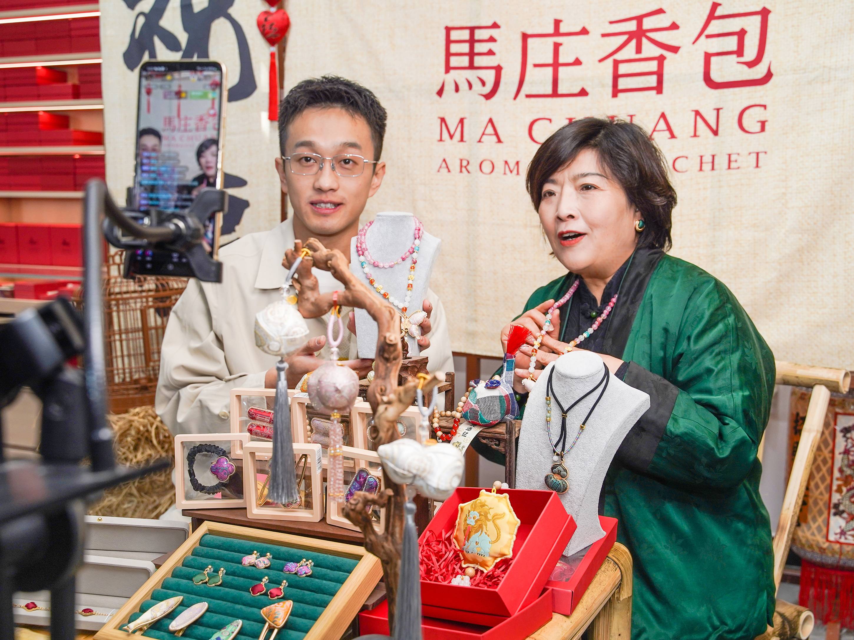 2024年,马庄香包迎来了新的机遇。我们积极探索特色产业发展,以“线上+线下”方式,推动香包产业“出圈”,开出“香包致富车”,走上乡村振兴路。当年销售额达1400余万元,带动本村400余人就业增收。