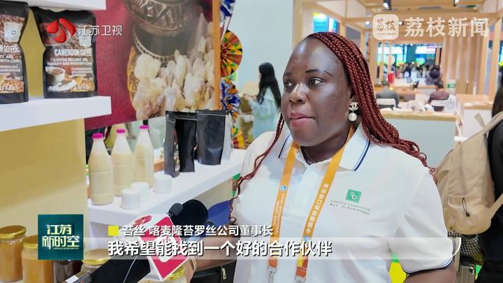 荔枝新闻中心记者范洁萍说:“感受到非洲的风情了吗?本届进博会扩大了非洲展区面积,并为最不发达国家提供零关税政策,帮助他们的产品走向市场。”