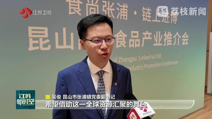 荔枝新闻中心记者范洁萍说:“进博会上充满了发展机遇,不管是行业巨头还是中小企业,都可以共享。现在正在进行的是江苏昆山张浦镇的专场推介会,他们以‘镇’为单位,带着优势产品在全球客商面前组团亮相!”