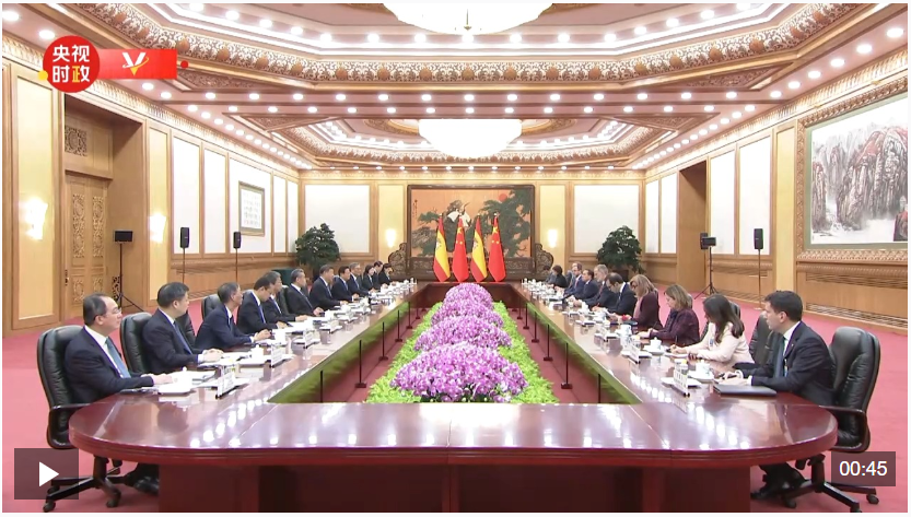 习近平欢迎费利佩六世国王访华,指出中国和西班牙都有深厚的历史文化底蕴。建交50多年来,两国坚持从战略高度和长远角度看待和发展双边关系,相互尊重、相互支持、相互成就,树立了不同历史文化、不同社会制度国家友好相处、共谋发展的典范,也为推动全球开放合作、维护国际公平正义发挥了重要作用。
