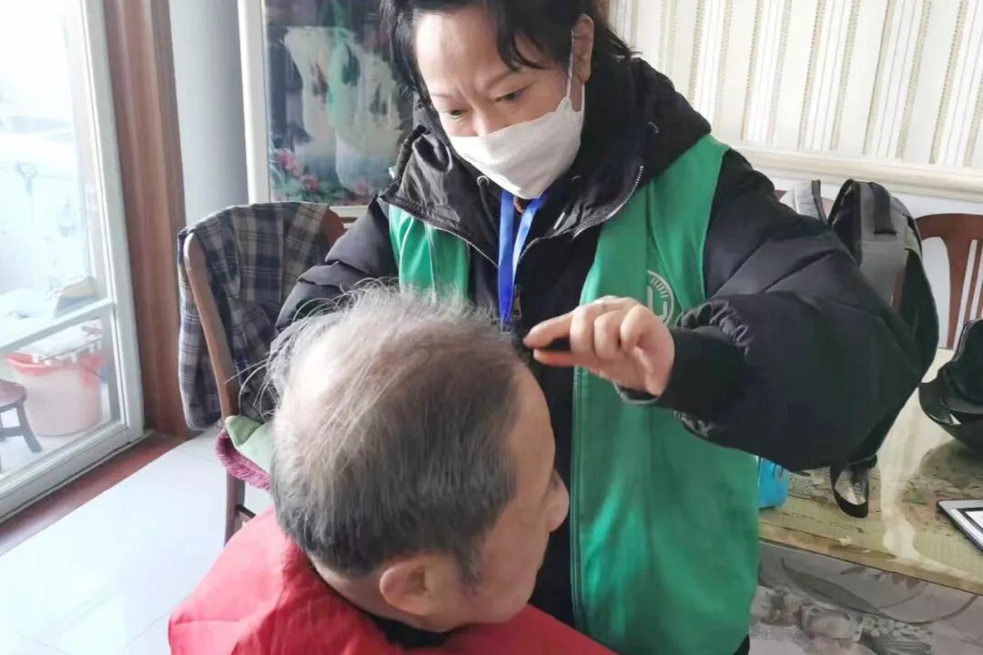 “爷爷,您想留短点还是稍微修修?”助老员吕海华半蹲在椅子旁,凑近听力不便的陈大爷耳边询问,剪刀起落间,他们唠起了家常。“我每周到这里服务三次,为老人提供家庭清洁、日常擦洗、理发、协助进食等基础照料之外,更会关注到老人的健康状况和心理需求。”吕海华表示。