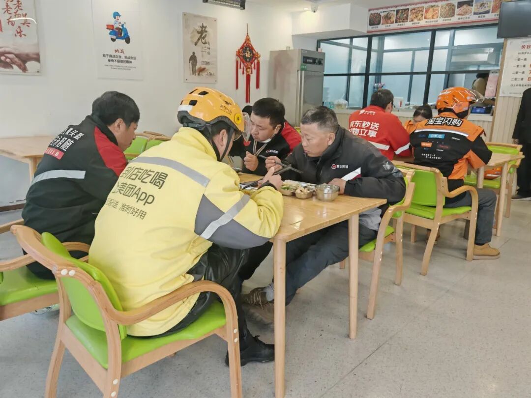 11月11日中午,依托社区“长者幸福食堂”服务与社区党群服务中心,盐都区潘黄街道东升社区“小哥食堂”正式投入使用。到饭点,记者及“两新”组织专职党务工作者在食堂与10多名外卖小哥共进午餐。室外寒风凛冽,室内温暖如春,食堂就餐环境与机关餐厅相差无几。一份青椒肉丝、一份烧卜页、一份炖鸡蛋、一份炒菠菜以及一份青菜豆腐汤,“四菜一汤”仅收10块钱,而且口味相当不错。窗口大姐边服务边反复招呼:“汤和饭不够可以加,不收费呀!”快递小哥陈鹏和我们边吃边聊:“盐都的暖心驿站布点合理,我们在市区最远10分钟路程就可以到任何一个站点享受服务,刷卡即可进门,来到站点就像回到家一样。”