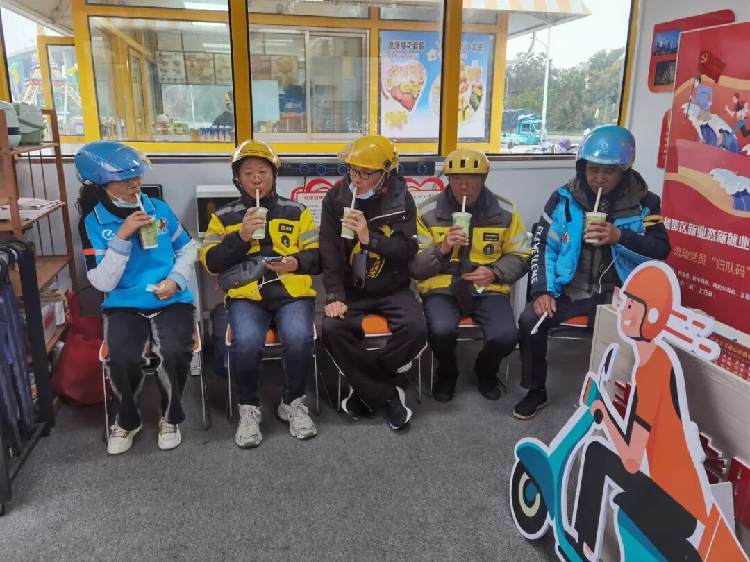 建好是基础,管好用好才是关键。盐都明确“区-街道-社区”管理体系,制定管理制度、统筹资源调配。街道选派专职党务工作者担任联络员,每周走访站点2次以上,收集问题并及时反馈;社区安排业务骨干担任站长,负责日常管理、设施维护,确保站点大门常开、物资常供。站点在满足喝水、热饭、充电等基本服务外,还根据四季冷暖,有针对性地供应姜茶、藿香正气水、绿豆汤等,在台风、暴雨等恶劣天气时,站点还可以临时充当“避险点”。此外,还利用全区新就业群体服务中心开设“流动课堂”,开展“外卖运营技巧”“交通安全”等培训,目前已有98名新就业群体报名参加并实现技能提升。