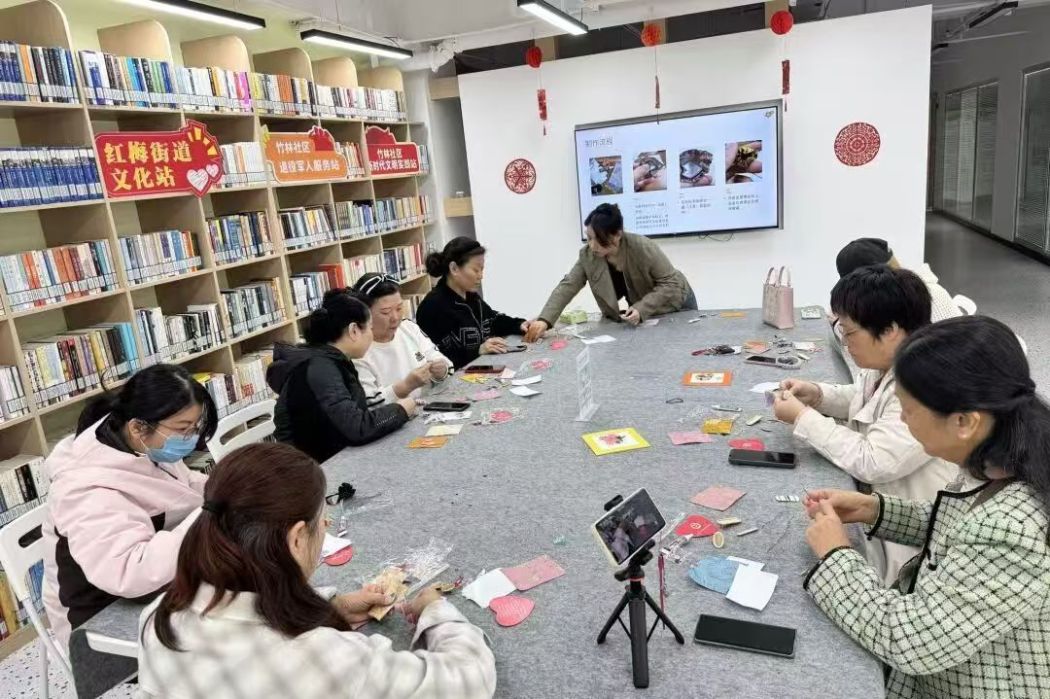 为让非遗成果“走出工作室、走进生活里”,社区还组织义卖走进竹林壹号小区、融入梅亭佳园楼道文化建设、嵌入天宁移动服务厅、带入竹林壹号幼儿园,通过“家门口的非遗义卖”,以“看得见、摸得着”的方式,为再就业成果搭建了展示与转化的平台,让非遗真正走进居民日常生活。