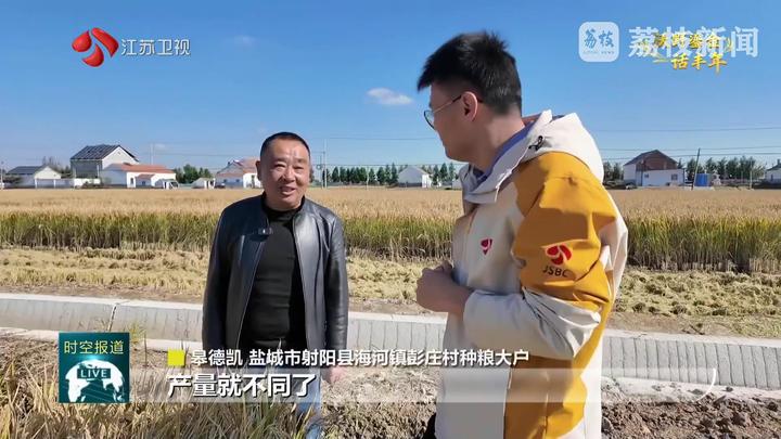 盐城市射阳县海河镇彭庄村种粮大户皋德凯说:“产量就不同了,今年还可以,亩产1200斤,每亩地能增产100斤左右。”