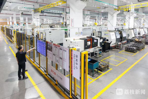 行走天宁高新区,一座座忙碌的工厂活力澎湃。在常州盛天传动科技有限公司,今年5月启用的智能工厂科技感拉满。车间内,工业机器人舞动手臂,动作迅速,技术工人们则紧盯屏幕,游刃有余地控制着整个车间。