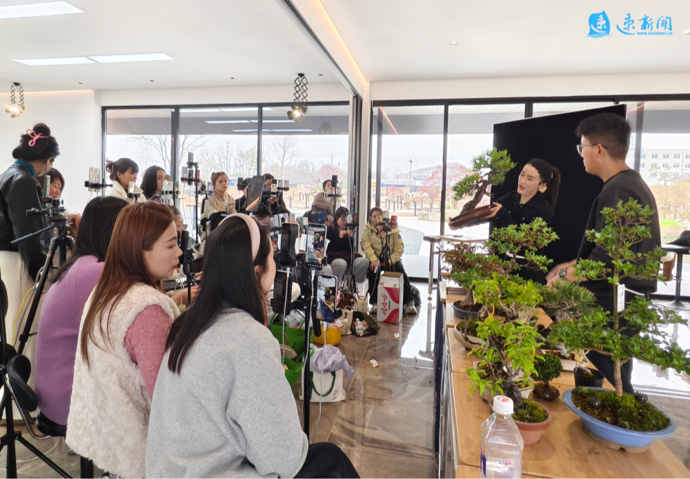 在沭阳县扎下镇艺森园盆景基地,一场场“矩阵直播”正在上演。一件产品由多位主播在多个平台同步推广,创下4小时销售额破200万元的记录。