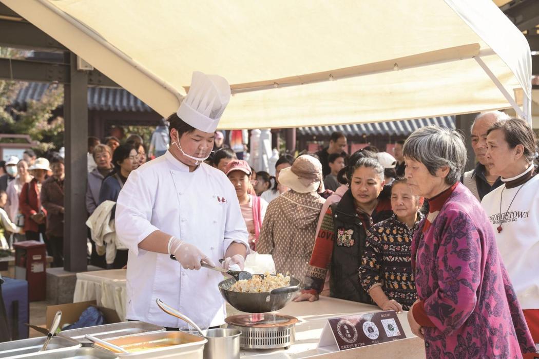 活动当天,古韵十足的萃园中既藏着江南园林的雅致,又盈满了市井烟火的热闹。入园处,城市IP“常宝”热情迎客,不少市民主动上前合影;园内,美食香气与非遗韵味交织,引人驻足探寻。春江楼前,锣鼓“咚锵”作响,阳湖拳刚劲亮相,万绥猴戏灵动登场,围观的市民、游客看得投入,叫好声与掌声此起彼伏。石园区域,常州老字号、非遗、图书、文创、“文明有你周周有约”文明集市等近30家特色摊位齐聚。常州萝卜干炒饭、天目湖砂锅鱼头、德泰恒特色点心等美食免费派送摊位前早早排起了长队,不少摊主准备了“打卡”好礼与优惠福利,吸引市民现场选购。“既能尝美食又能得福利,在家门口就能逛到这么多老字号,真是个收获满满的周末!”带着家人逛集市的市民刘女士笑着说。