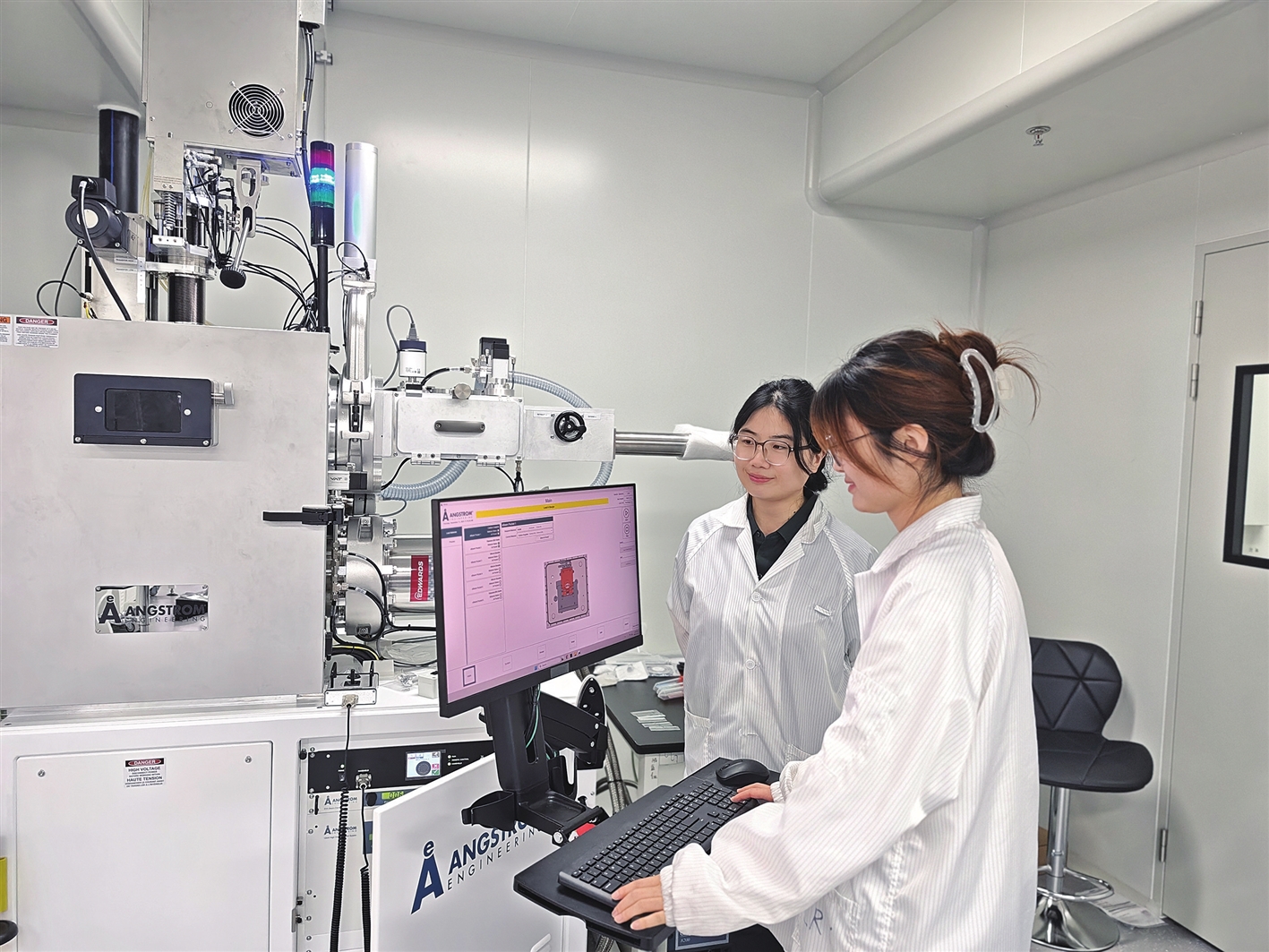 纳米级氧化物薄膜,是构建“纳米结构控光”技术的关键基础材料。而这类关键材料的高效、精准制备,离不开全自动光学薄膜制备仪器的技术支撑。走进实验室,全自动光学薄膜制备仪器透明的反应腔里,纳米级的氧化物薄膜正一层层精准沉积。“以前在国外做光学薄膜,每蒸一层氧化物都像守着锅等粥熟。”文雯说,没有全自动设备时,每次沉积一层薄膜,设备都会因反应放热导致腔体内温度波动,必须有人守在旁边,等温度降到精准范围才能开始做下一层。中途稍不注意温度控制,整批样品就可能因精度不达标而报废。如今,学校为联合实验室采购了全自动光学薄膜制备仪器。学生只需在电脑上输入每层氧化物的厚度、沉积速率、温度阈值等预设参数,全自动仪器就会自己监控反应温度,放热时自动开启冷却系统,温度稳定后再衔接下一层沉积,全程无需人工干预。“学校还帮我们把跨机构实验的费用减半,大大降低了前期研发成本。”文雯说。