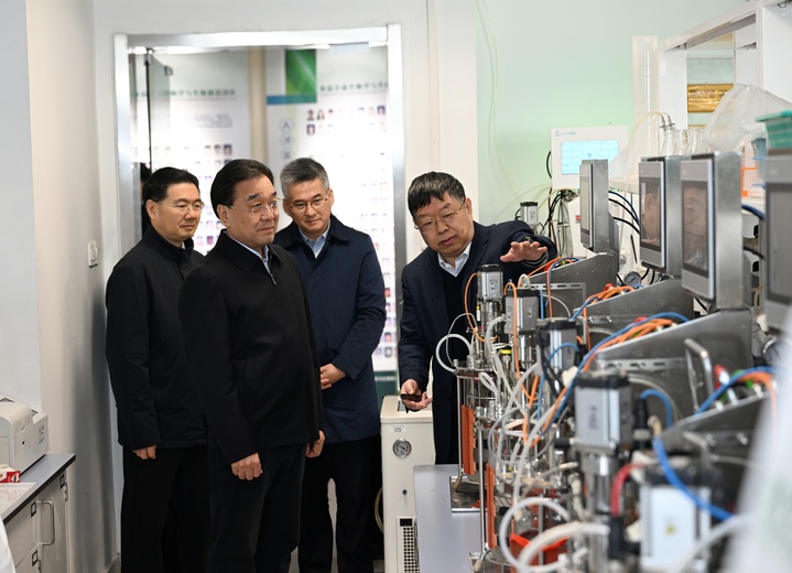 江南大学未来食品科学中心依托食品科学与工程、轻工技术与工程等优势学科,建设了多个科研平台。信长星走进实验室,与院士专家交流,听取食品合成生物学、新质蛋白等领域成果转化应用情况介绍。他指出,党的二十届四中全会对深入推进“双一流”高校和国家交叉学科中心建设作出战略部署,要深入践行大食物观,推进学科交叉融合和跨学科研究,推出丰富多样的食物品种,更好满足人民群众美好生活需要。要推动生物制造与人工智能、量子计算等融合发展,促进科研范式变革,加速科技创新突破,积极抢占未来食品科技制高点。