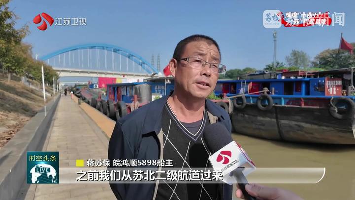 皖鸿顺5898船主蒋苏保说:“之前我们从苏北二级航道过来,都是2000吨级的船,进入苏南运河,必须要换1000吨级的船。一船货我们要分好几趟,就是耽误时间。”