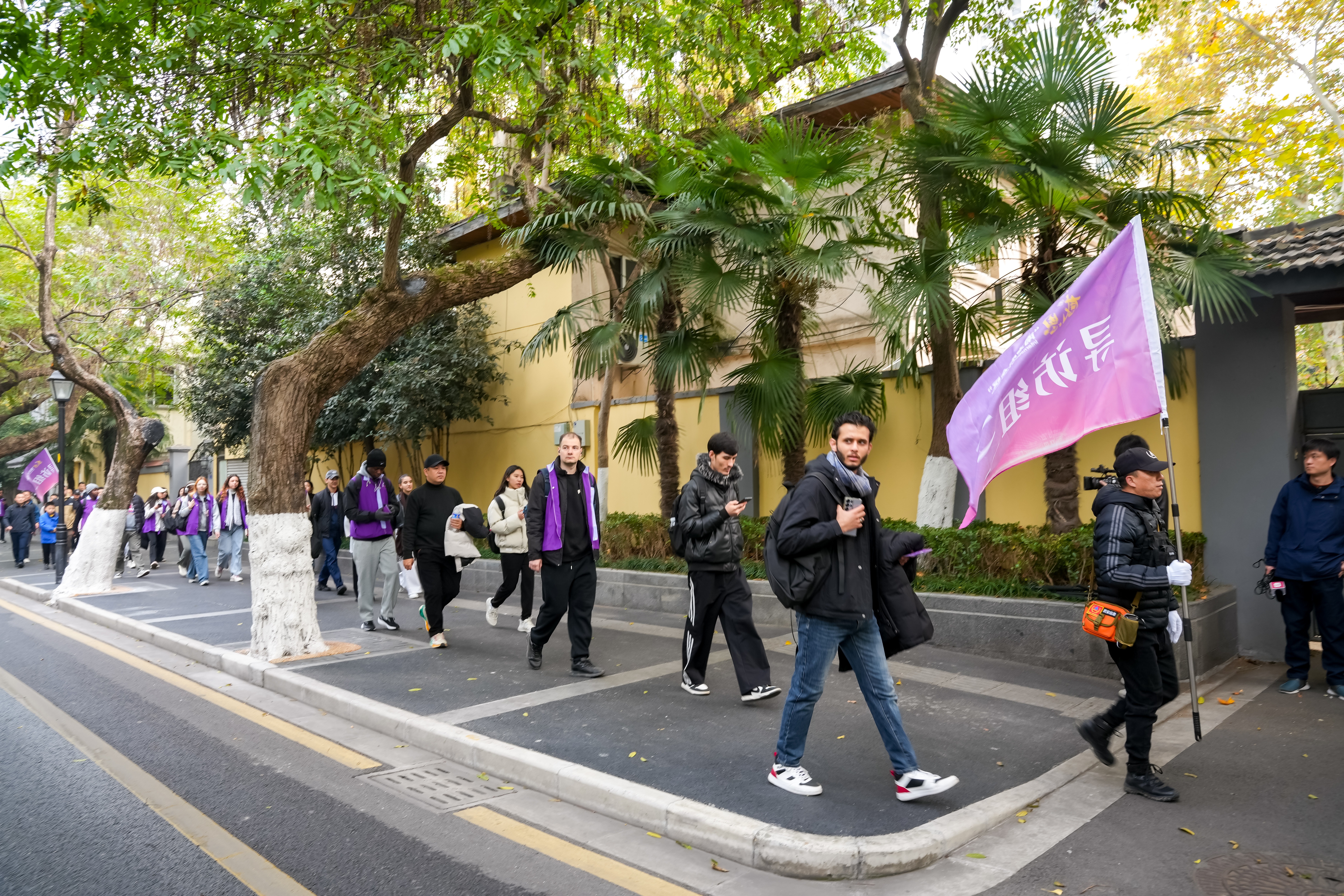 中外学子行走在宁海路。