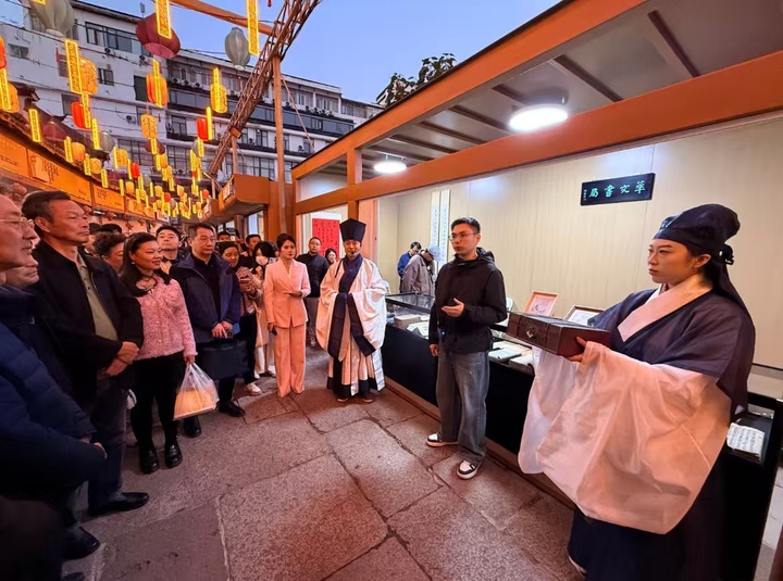11月22日晚的南京夫子庙景区,华灯初上,100多名汉服爱好者盛装巡游,手握书卷,再现古人提灯夜读的场景。这是“2025金陵旧书市集”的一项重要活动。这场持续五天的阅读盛事集“逛、玩、学、晒”于一体,成为爱书人的节日,也让更多人了解旧书,爱上旧书。