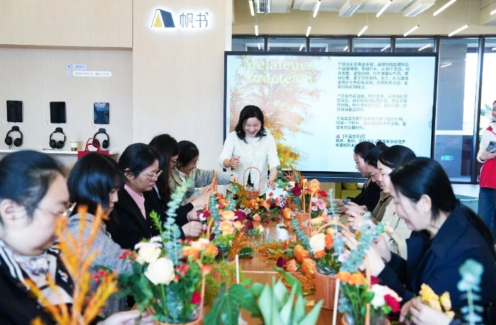 为持续提升课程品质与文化吸引力,中心积极引入优质文化资源。特邀盐城市音协爱乐合唱团、盐城市欢歌笑语合唱团入驻,开设合唱艺术课程与工作坊,用和谐的歌声凝聚人心,丰富市民精神文化生活,成为“凝聚共识”的生动实践。举办高品质朝阳读书会,开展“财富思维自我进阶健康生活”等主题阅读,打造深度阅读与思想交流空间,满足市民对精神食粮的渴求,营造浓厚的学习氛围。此外,还邀请专业花艺师定期驻点授课,传授插花技艺与生活美学,提升市民审美情趣和生活品质,让文明风尚融入日常。