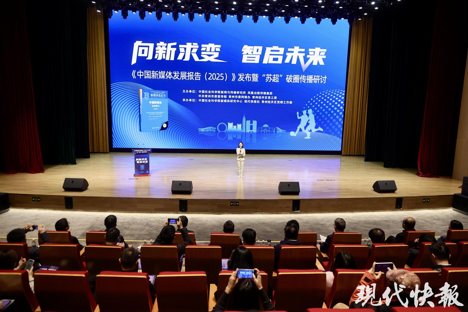向新求变,智启未来。12月2日,《中国新媒体发展报告(2025)》发布暨“苏超”破圈传播研讨在常州市经开区举行。来自政产学研多个领域的专家学者会聚一堂,共同探讨科技革命浪潮下,主流媒体系统性变革的实践路径。本次活动由中国社会科学院新闻与传播研究所、凤凰出版传媒集团、中共常州市委宣传部、常州市委网信办、常州经开区党工委联合主办,中国社会科学院新媒体研究中心、现代快报社、常州经开区党群工作部承办。