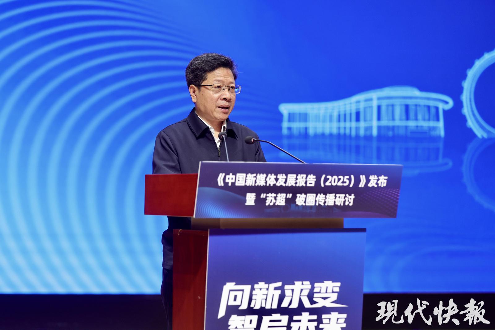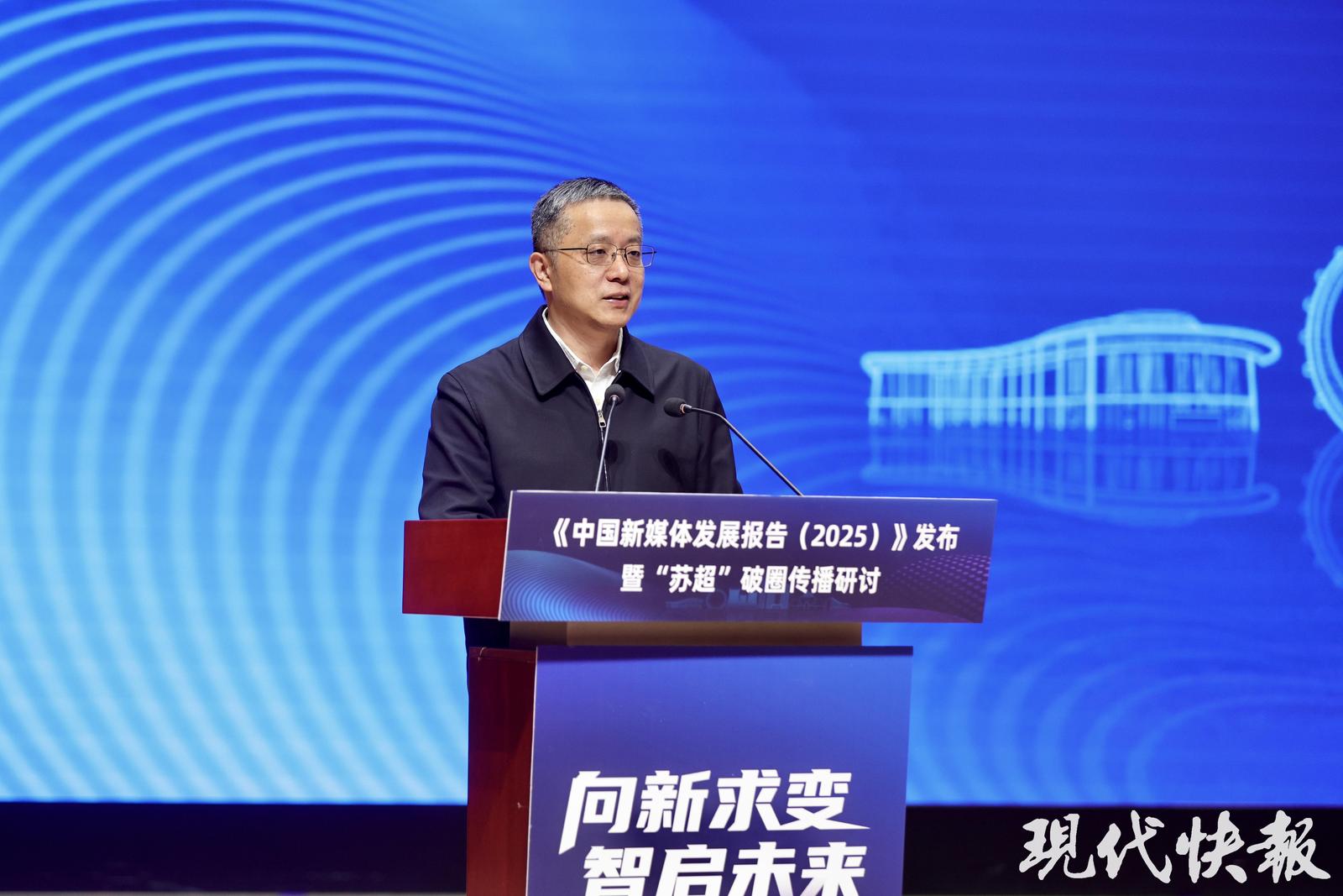 江苏省委网信办副主任尤健在讲话中表示,《新媒体蓝皮书》作为国内研究新媒体发展的重要创新成果和权威研究报告,从2021年起连续五年在江苏举办发布活动,有力见证了新媒体从“融合转型”到“系统变革”的进阶之路,以专业洞察为江苏新媒体加速转型升级提供了重要支撑。近年来,江苏网络传播工作坚持品牌化思路、精品化路线,着力扩大高质量内容供给,壮大网上主流思想舆论。一是坚持守正创新,推动主流舆论直抵人心。持续深耕“我比任何时候更懂你”“江南燕”等网上重大主题宣传品牌IP,让主流声音传得更开、更广、更深入。二是强化技术赋能,驱动传播实践迭代升级,推动网络传播从“数字化”向“数智化”跨越。三是多元主体共创,释放网络传播澎湃动能。“苏超”的火爆正是全民热情参与的生动体现。