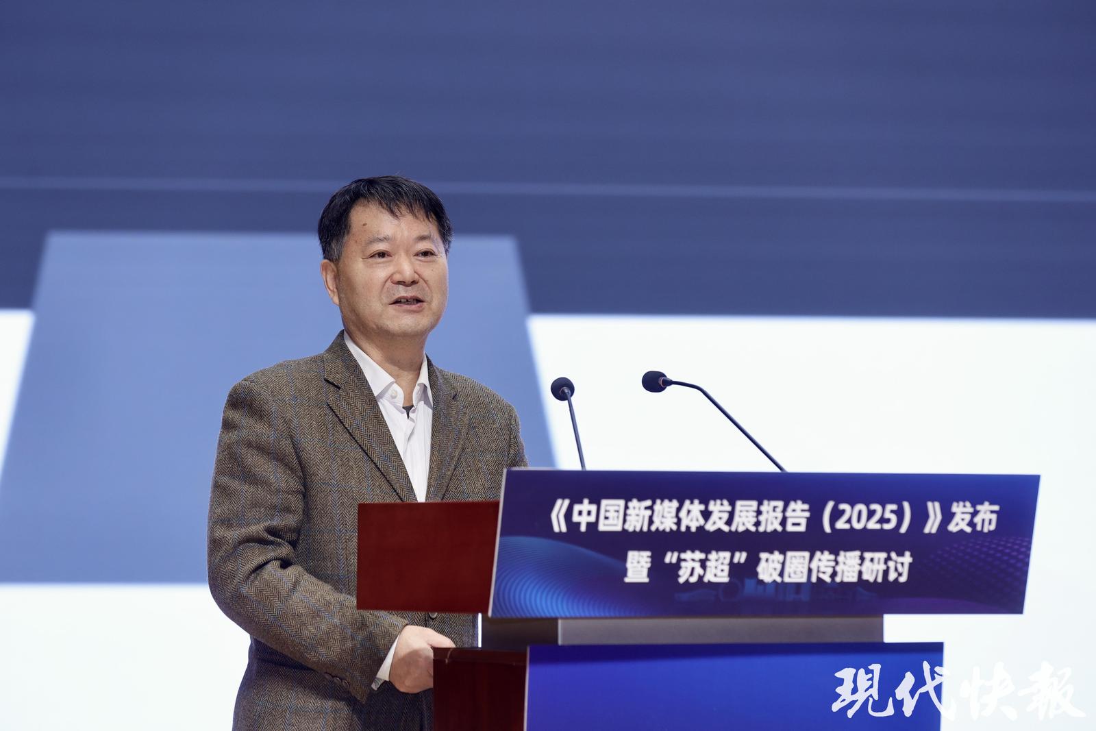 凤凰出版传媒集团副总经理、现代快报社社长屠法在致辞中表示,凤凰出版传媒集团、现代快报与中国社会科学院新闻研究所连续5年共同见证《中国新媒体发展报告》的发布,探讨技术发展浪潮下如何塑造主流舆论新格局的重大命题。近年来,现代快报坚持“新闻+文化”战略定位持续探索创新,走出了一条特色鲜明的媒体融合之路。今年,现代快报围绕抗战胜利80周年、党的二十届四中全会、“文化中国行”等重要节点和重大主题,精心策划推出一批“正能量澎湃大流量”的报道精品。在“苏超”传播中,围绕赛事、文体旅商融合、网络热梗背后的历史文化等议题,创新创优报道形式,推出了一批高质量、大流量的现象级融媒体产品。