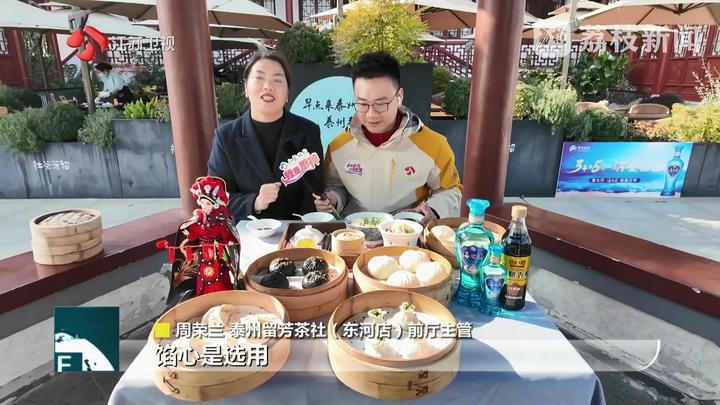 在位于泰州市区的百年早茶老店——留芳茶社,大厨们现场展示了挑干丝和摇藕粉圆子的技艺。虽然已经到中午,但是来吃早茶的食客依旧络绎不绝。其中,最受大家欢迎的就是茶社配合“苏超”泰州队夺冠推出的“冠军套餐”!