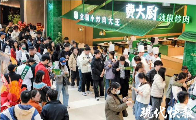 这并非个案,这样的场景正在南京多个商圈不断上演。10月,来自湖北的一个茶饮品牌南京首店在江宁景枫开业。根据门店发布的“战报”,该店10月单月GMV(商品交易总额)达94.77万,日均出杯1486杯;11月,来自湖南的餐饮品牌南京首店也在景枫开业,更是引发了排队潮。据门店介绍,开业当天,下午四点半就有人前来取号,队伍环绕景枫中心中庭绕了3圈,相当于有2000米长。