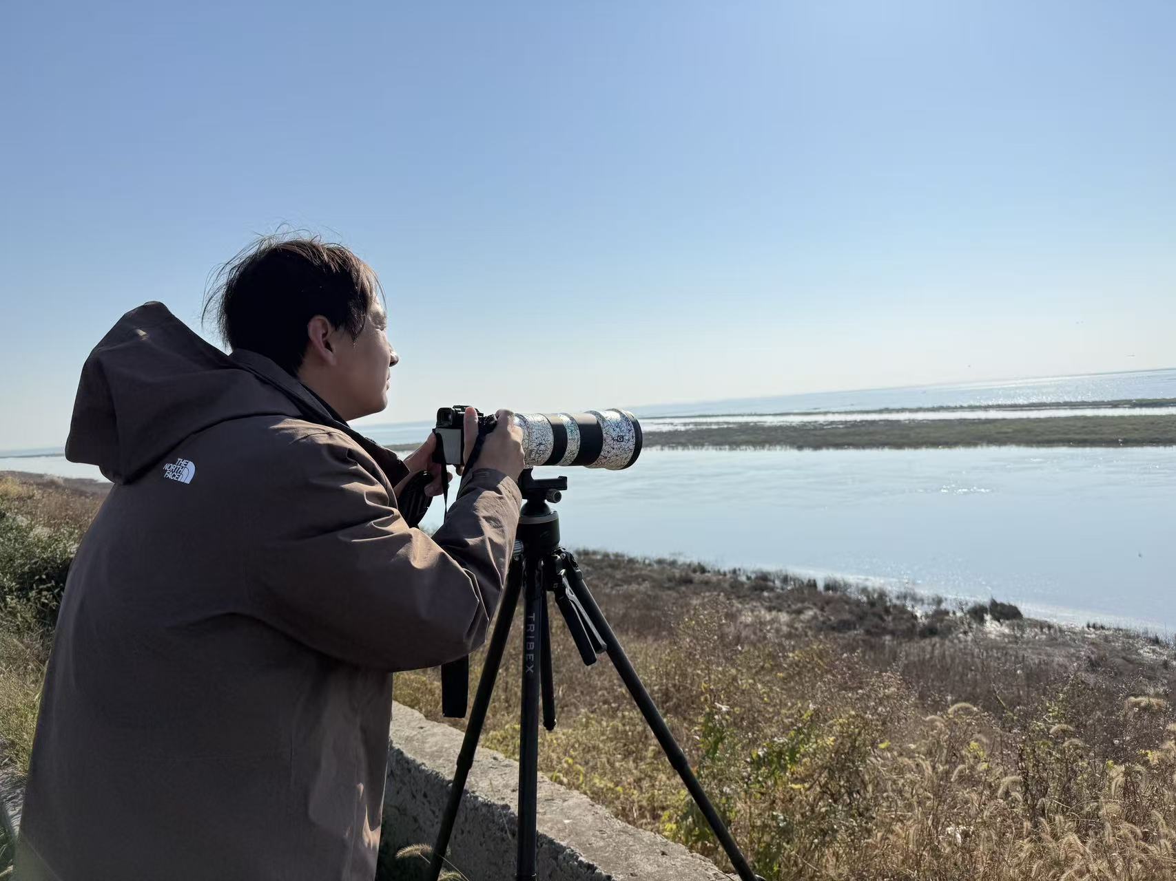 正在石臼湖畔拍鸟的哈敏哲。 记者 杜莹 摄