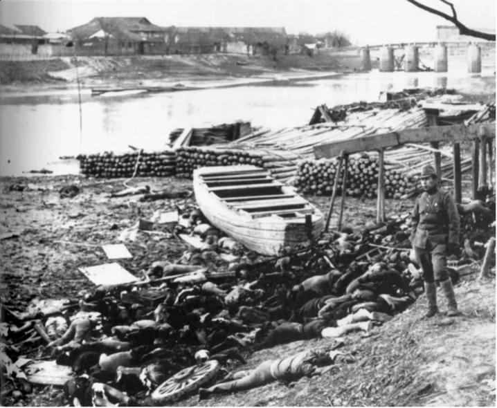 12月13日,47名工人与数千难民被拘押至江边。15日子夜,日军疯狂扫射。人如苇草倒伏,长江赤红染血,喊声、哭声、机枪声连成一片,金义宝等45名工友殉难。