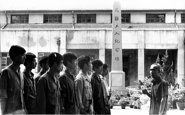彼时纪念碑矗立在电厂生活区大门正中央,正面的“死难工人纪念碑”七个金字,由时任南京市市长柯庆施于1951年亲笔题写;下方二级基座上,一面镌刻着45名殉难工友的姓名,一面用近千字碑文书写殉难经历。碑边环绕水泥围栏,栽满冬青。