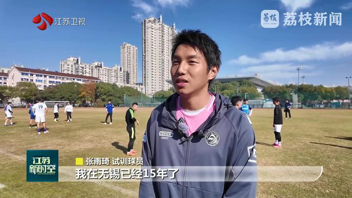 试训球员胡玉虎说:“我正在读高一,和吴磊队长一起踢过球。他也比较支持我参加‘苏超’,为无锡争光。”