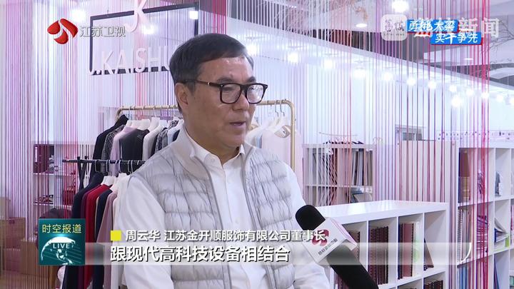 江苏金开顺服饰有限公司董事长周云华说:“保持传统手工制作跟现代高科技设备相结合,公司申请了450多个设计专利。”