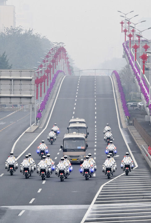 载着英雄的礼宾车队从住地出发,在礼宾摩托车队护卫下,驶上复兴路,驶入长安街,驶向人民大会堂。