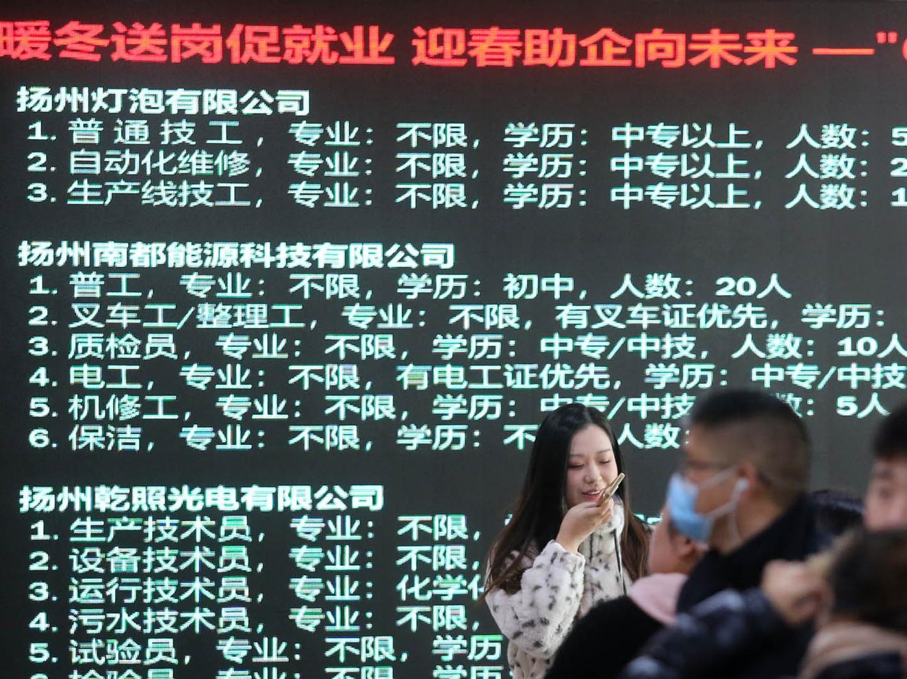 12月27日上午,由江苏省劳动就业管理中心、扬州市人力资源和社会保障局联合主办,扬州市劳动就业服务中心、扬州市人力资源市场管理办公室承办的“暖冬送岗促就业迎春助企向未来”扬州系列招聘活动暨脱贫人口就业帮扶省市联合招聘——扬州“613”产业集群暨制造业专场招聘会在月城科技广场举行,一场“线上+线下”的招聘活动,为制造企业与人才之间搭建了平台,让供需对接更直接、更有效。
