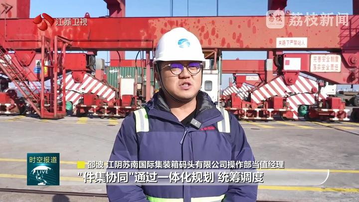 江阴苏南国际集装箱码头有限公司操作部当值经理邵波说:“以往这类货物需要分船运输,‘件集协同’通过一体化规划统筹调度,实现资源优化配置。”