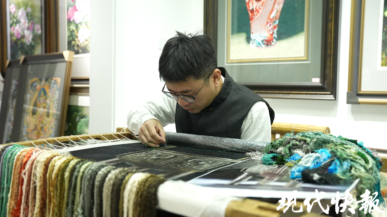 这背后是对苏绣技艺的极致追求。为了表现不同文物的质感,他需要将一根丝线劈成128份去用,这叫“劈丝”。正是这种细腻到极致的追求,才让沉睡千年的青铜器“活”了起来,有了属于当代的温度与灵魂。