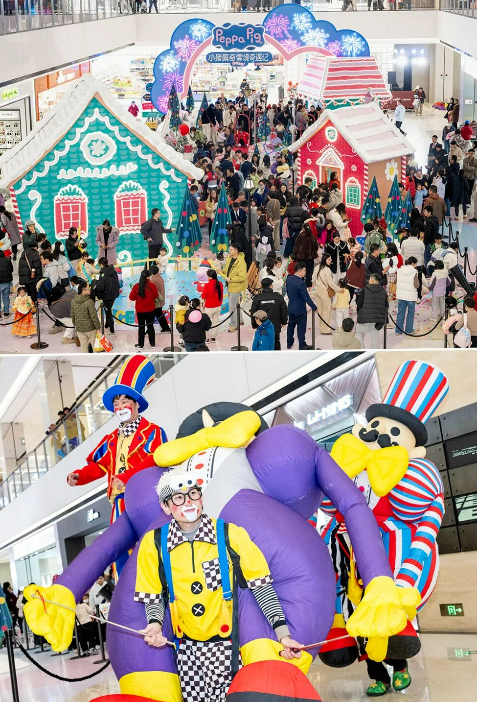 雨花万象天地的“小猪佩奇暖冬奇遇季”全国首展也吸引了不少观众。展出结合冬季主题打造了多个色彩鲜亮的互动打卡点与亲子游乐区。粉色的佩奇玩偶、飘雪的冬日庭院等场景,让孩子们笑声不断。商场相关负责人介绍,元旦假期,商场还设置了音乐演出、浪漫飘雪等活动。