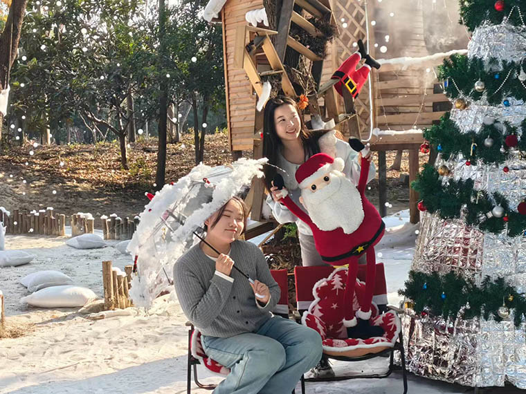 跨年游园会在2025年最后一天拉开序幕。不用远赴异国,“织梦雪乡”打造的森林雪域氛围,缔造了完美的北欧风雪景打卡地。在这里,游客们的心头好,是与可爱萌宠互动,体验冬日露营之趣,围着篝火分享故事,给动物喂食蔬菜。园内咖啡馆、船吧换上了元旦新装,音乐与互动游戏融合,人们留下了特别的跨年记忆。